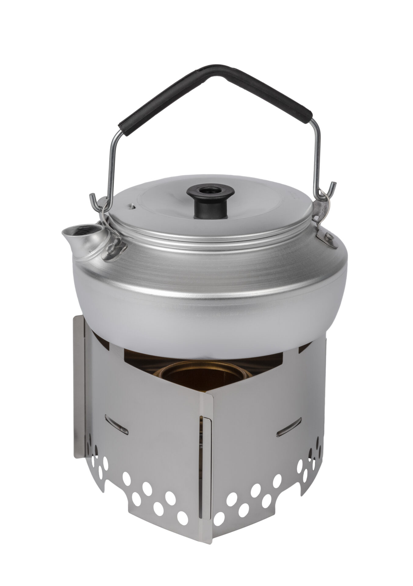 Kettle 27 Small 0.6 L in aluminum with lid, low model. With wire handle and removeable plastic grip. Fits all Trangia stoves 27 Small..