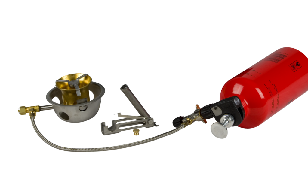 For this burner we recommend a high quality liquid fuel such as white gas or alkylate petrol. Other suitable fuels are Primus Powerfuel and Coleman fuel. These fuels have the highest energy content, burn very cleanly and require the least amount of cleaning and maintenance. This type of fuel has different names in different countries, you can find the most common in our fuel list. (Links at the end of the page)
